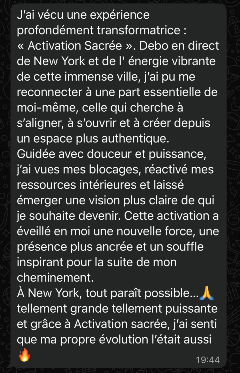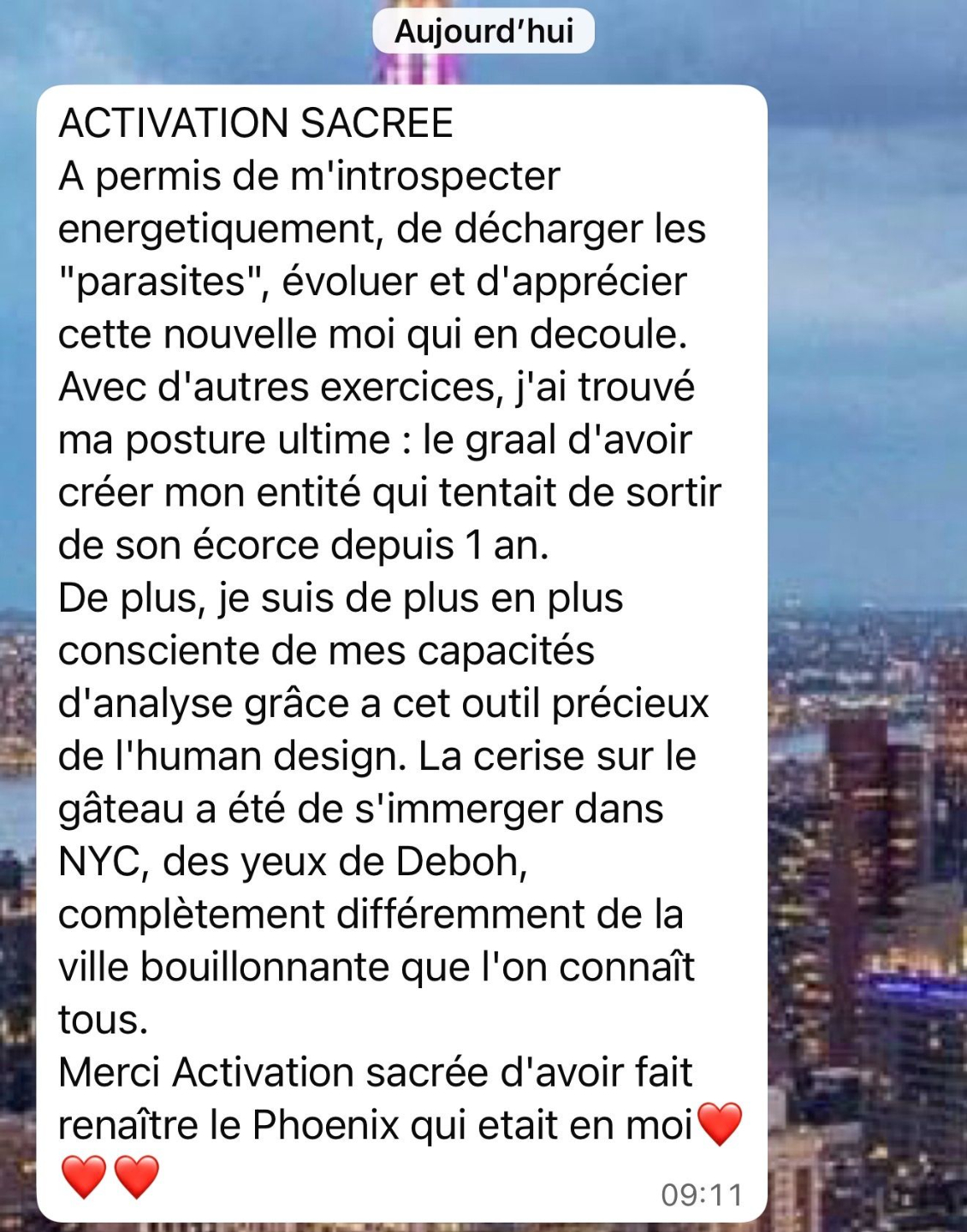 Quand j'ai créé Activation Sacrée , j'étais à New York…